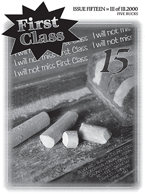As this site develops, all issues of First Class will be available as a free-download pdf file. Several are up right now, and more will pop up as I finish up the site. I will also have a way to purchase print copies for the small-press collectors out there (you can contact me at any time through the "contact" tab).