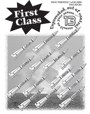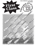 Four-Sep Publications published First Class lit-mag from 1996-2011. Well-regarded in the small press world of print magazines, it was put on hiatus after the publication of issue 35 in November, 2010. The covers were originally printed on colored paper, so they lose some lustre here in white...